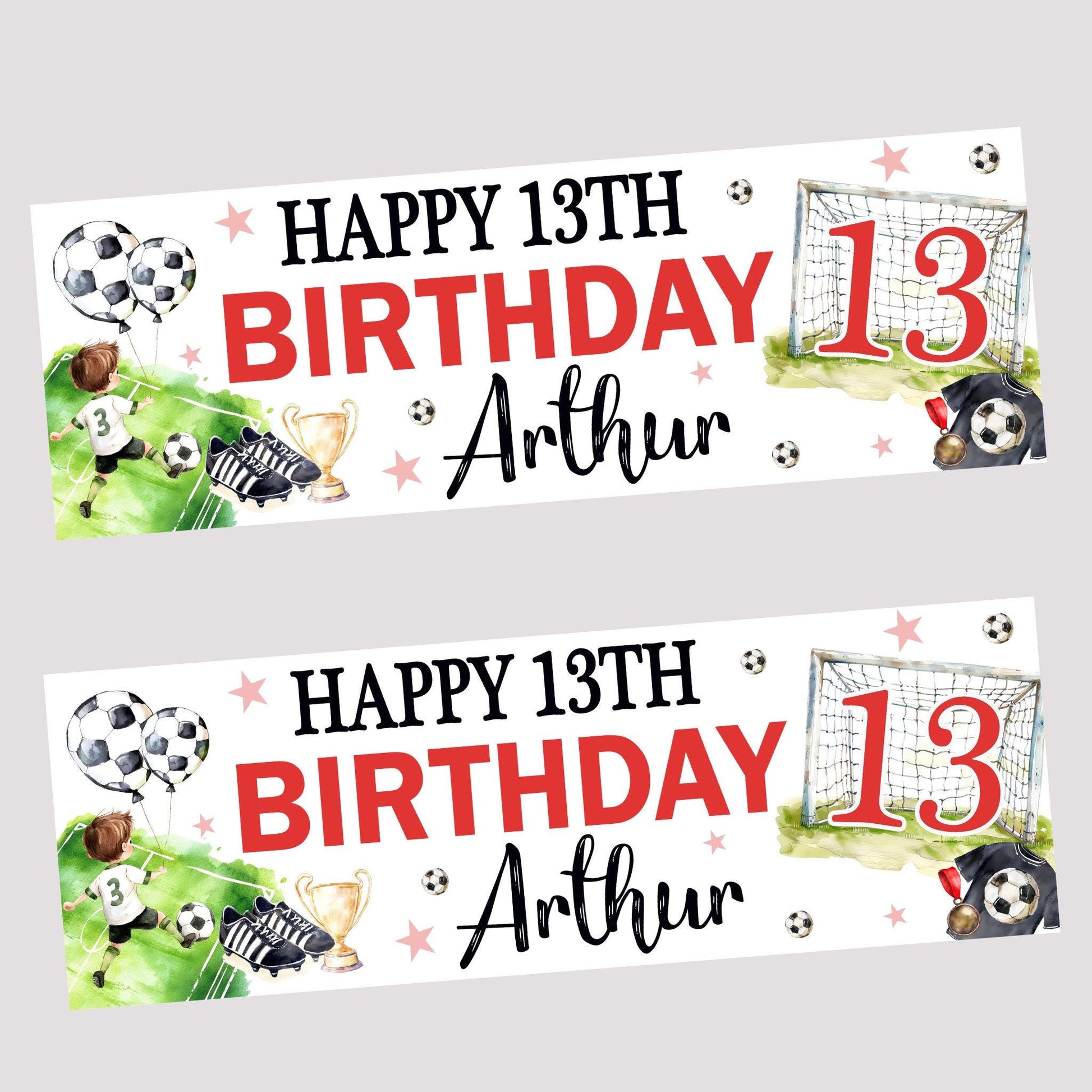 Personalised Happy Birthday Party Banner, Party Decor, Add Name Age, Boys Football