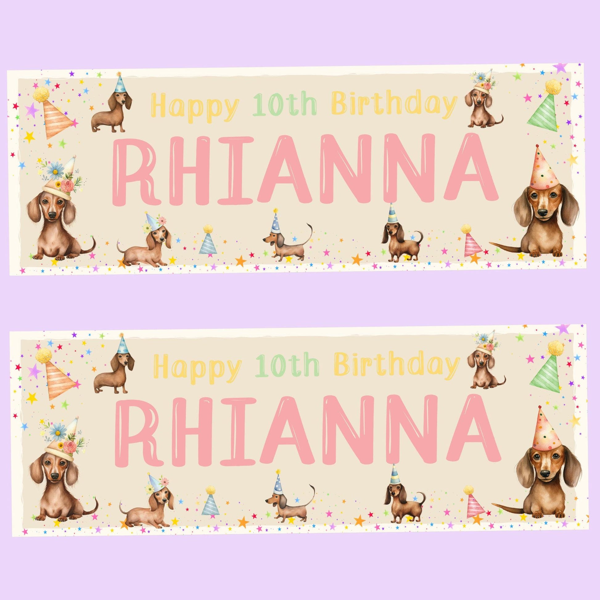 Personalised Happy Birthday Party Banner, Party Decor, Add Name Age, Dachshund Dog Design