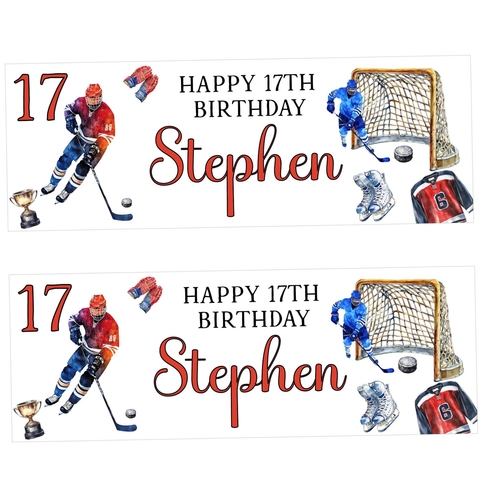 Personalised Happy Birthday Party Banner, Party Decor, Add Name Age, Ice Hockey