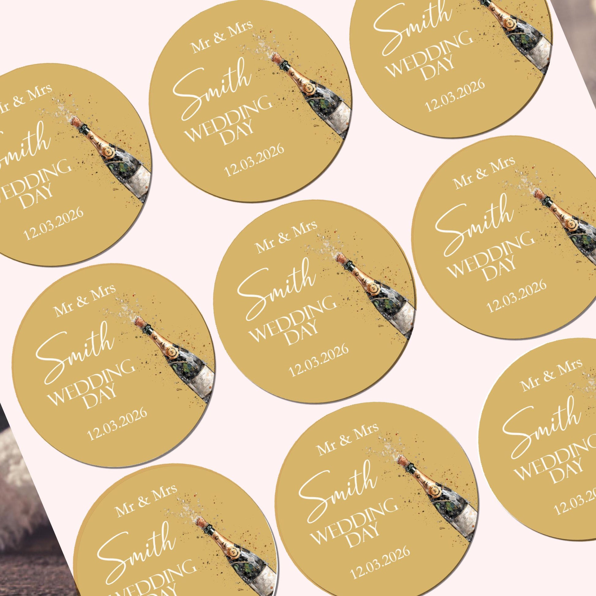 Personalised Wedding Stickers, Watercolour Champagne Bottle Design, Favor Labels
